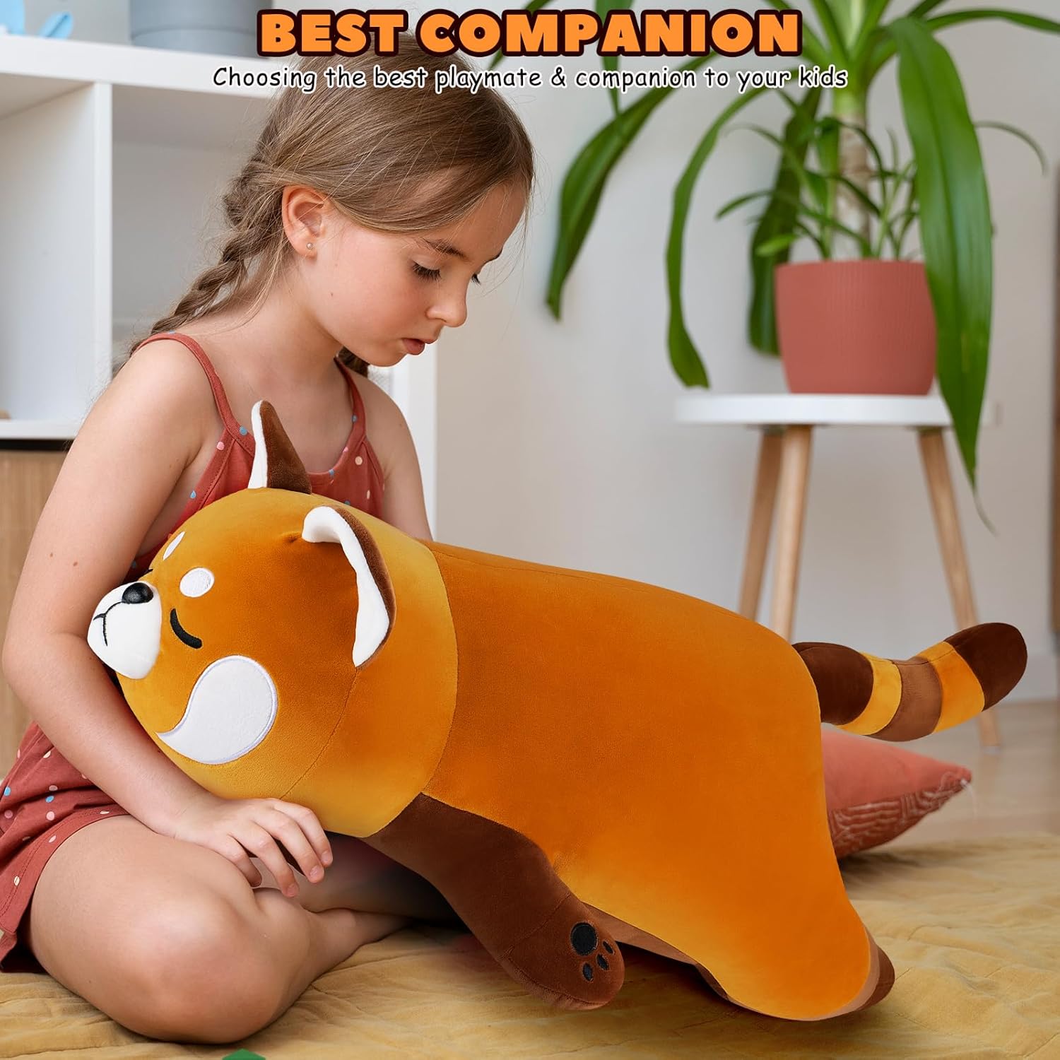 【Unique Design Gaint Red Panda Plush】Presents cute red panda stuffed animal is super soft and fat, the cute red panda plushie is 30 inch long. It is big and round cotton fills every area and is very plump. Its chubby body makes it perfect for cuddling. Delicately embroidered with black round eyes, a small nose, and an interesting under-eye circles, this kawaii plushies exudes an adorable appeal. Your little one will love this red panda plushies for its adorable charm.