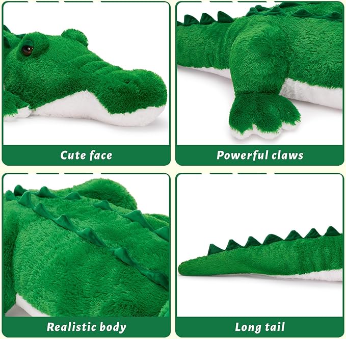 Premium Plush Quality: Made from ultra-soft, skin-friendly fabrics and reinforced stitching, this high-quality big alligator stuffed animal is built for endless hugs, playtime, and display. It keeps its shape and softness, even after years of love
