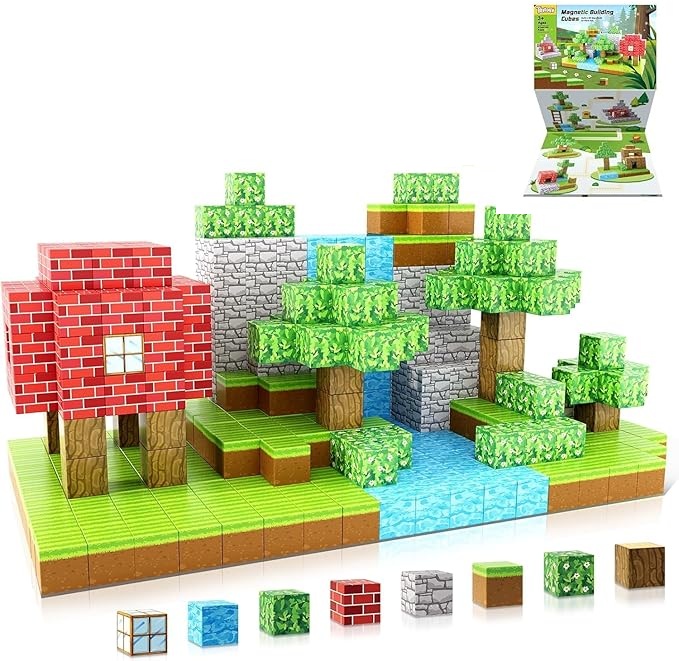 【TODDLER & BEGINNER TOYS MINE WORLD MAGNETIC SET】Unlike other magnet toys on the market, our magnetic cubes kit with super strong internal magnets, which is easier for toddlers ages 3+ to stick the cubes together and make builds sturdy. And round edges and the right size won't hurt little hands. Perfect STEM toys help kids gain a deeper understanding of the structure world and learn about magnetic properties. Recommended toys gifts for toddlers and kids ages 3-8.