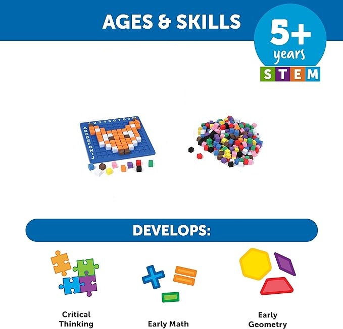 FINE MOTOR SKILL DEVELOPMENT - Enhances hand-eye coordination and dexterity as children carefully place pixel pieces to create patterns, designs, and complete structured challenges